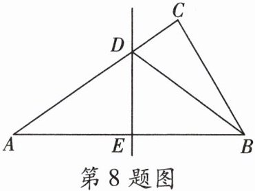 8. 如图,在△ABC 中,DE 垂直平分 AB,交边 AC 于点 D,交边 AB 于点 E,连接 BD。若 AC = 6,△BCD 的周长为 10,则 BC 的长为 (
