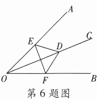 6. 如图,已知射线 OC 上的任意一点到∠AOB 的两边的距离都相等,点 D、E、F 分别在边 OC、OA、OB 上,如果要想证得 OE = OF,只需要添加以下四个条件中的某一个即可,请写出所有可能的条件的序号是______