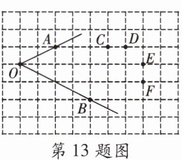 13. 在正方形网格中,∠AOB 的位置如图所示,到两边距离相等的点应是 (