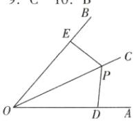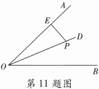 11. 如图,OP 是∠AOB 的平分线,点 P 到 OA 的距离为 3,点 N 是 OB 上的任意一点,则线段 PN 的取值范围为 (