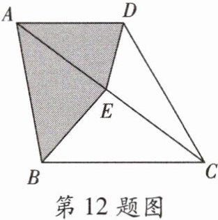 12. 如图,在四边形 ABCD 中,BE⊥AC 于点 E,连接 DE,四边形 ABCD 的面积为$ 12 cm^2。$若 BE 平分∠ABC,则四边形 ABED 的面积为 (