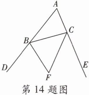 14. 如图,BF、CF 分别是∠DBC 和∠ECB 的平分线,则关于 F 的说法不正确的是 (