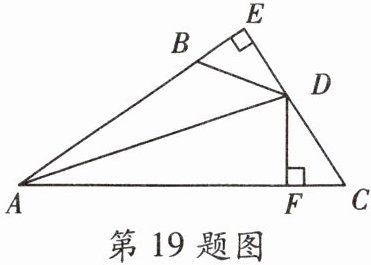 19. (10 分) 如图,DE⊥AB 于 E,DF⊥AC 于 F,若 BD = CD、BE = CF。