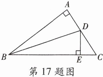 17. (10 分) 如图,在△ABC 中,∠A = 90°,DE⊥BC,BD 平分∠ABC,AD = 6 cm,BC = 15 cm,求△BDC 的面积。