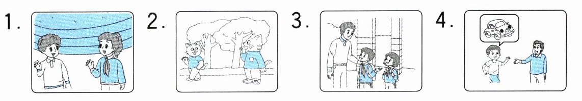 1. No;I'm not 2. Morning 3. is;friend;meet you 4. want;car;are;nice;Thank