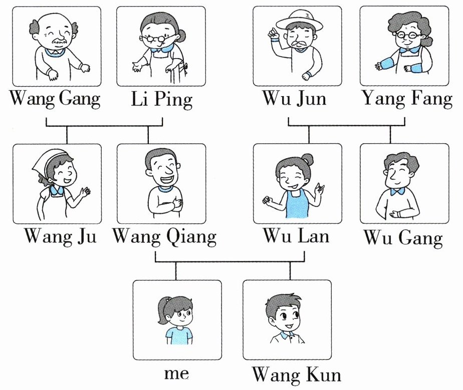 )2. Wang Qiang is Wang Kun's ______.A. uncle