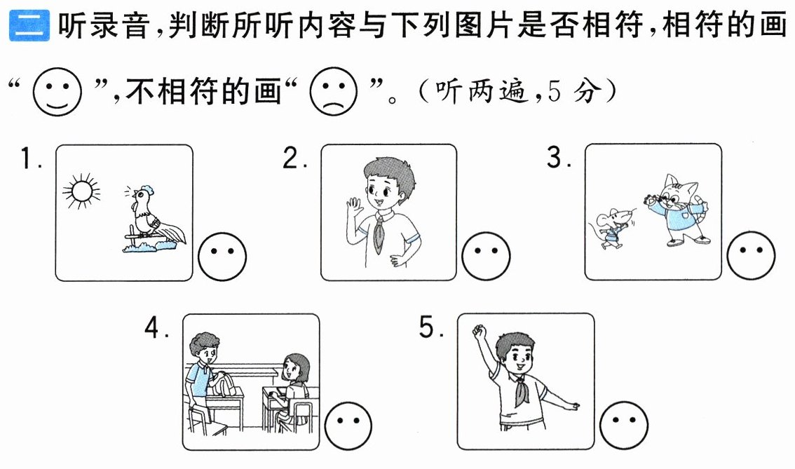 三听录音,给下列图片排序。(听两遍,12 分)