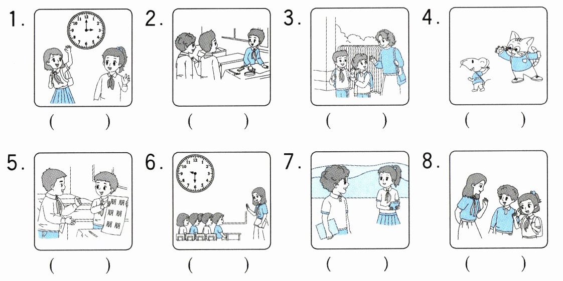 )5. A. Morning! B. Nice to meet you too. C. Thank you!