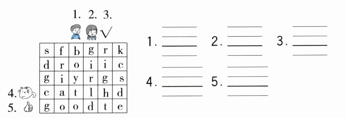 六 在方框里圈出与图片相对应的单词,并将其大写形式规范地抄写在四线三格中。(5 分)