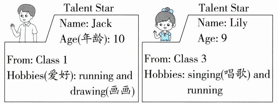 十三 新语篇 海报网页 根据学校"才艺之星"宣传栏中的信息,选择正确的答案。(10 分)