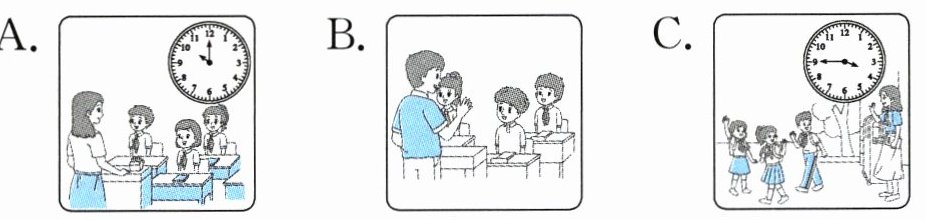 一 听录音,选出与所听内容相符的图片。(听两遍,6分)
