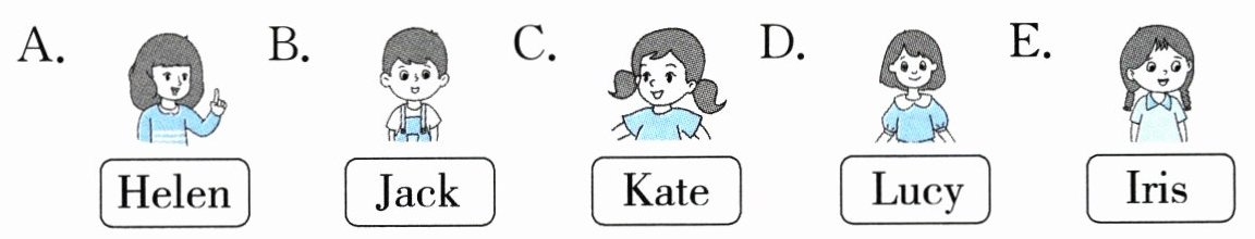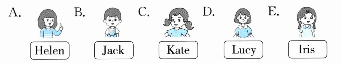 六 Kate 和同学们排队领新书。请根据他们名字的首字母在字母表中的顺序,安排他们的领取顺序,并按顺序将首字母的大小写形式写在四线三格中。(领取顺序只填图片序号)(10 分)
