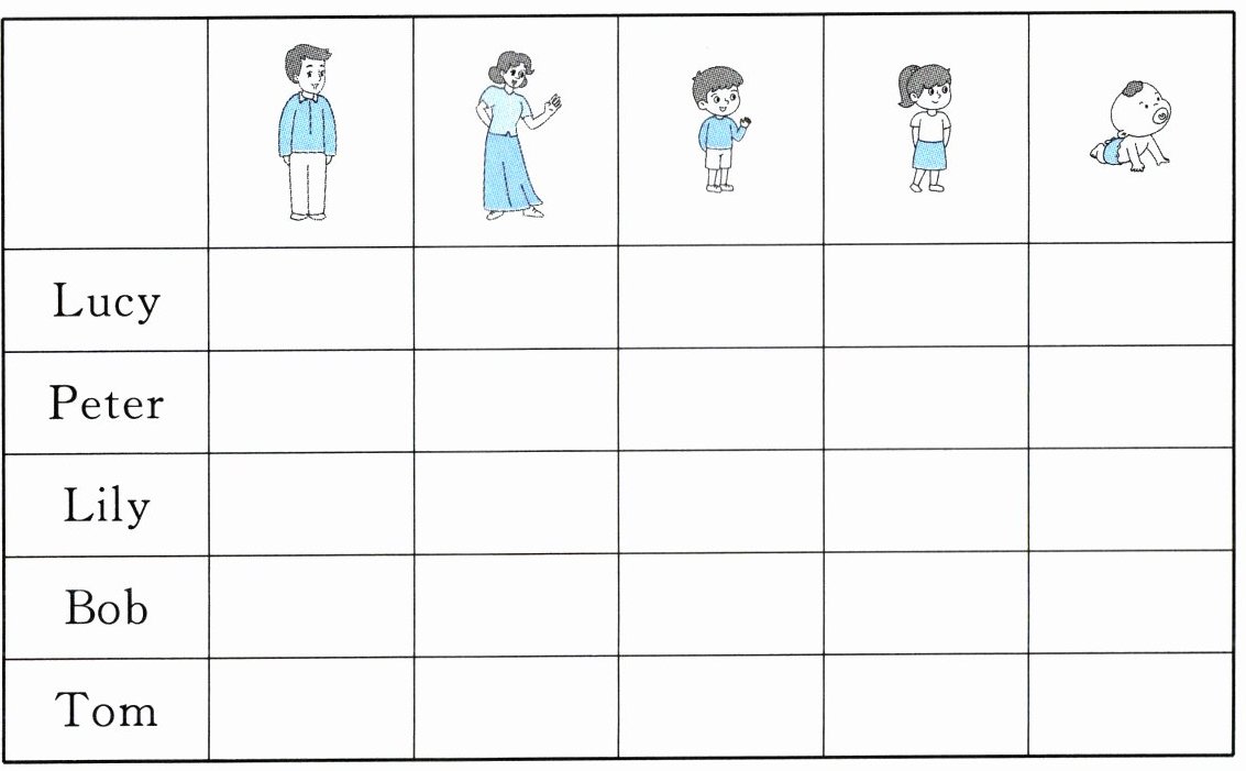 五 听录音,找出下列人物介绍的家庭成员,并在相应图片下画“√”。(听两遍,5 分)