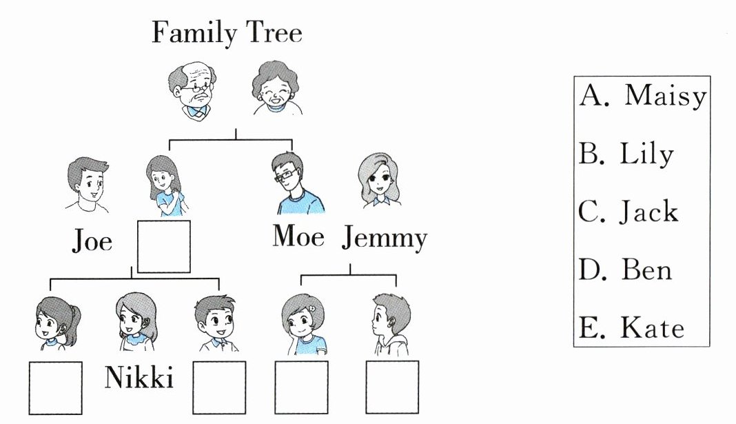五 听录音,补全家谱中人物的名字,将序号填在方格内。(听两遍,10 分)