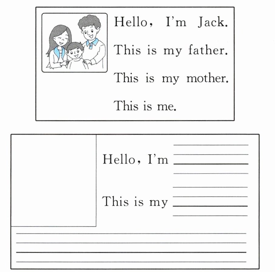 画图略 示例:Hello, I'm Bob. This is my dad. This is my mum. This is me.