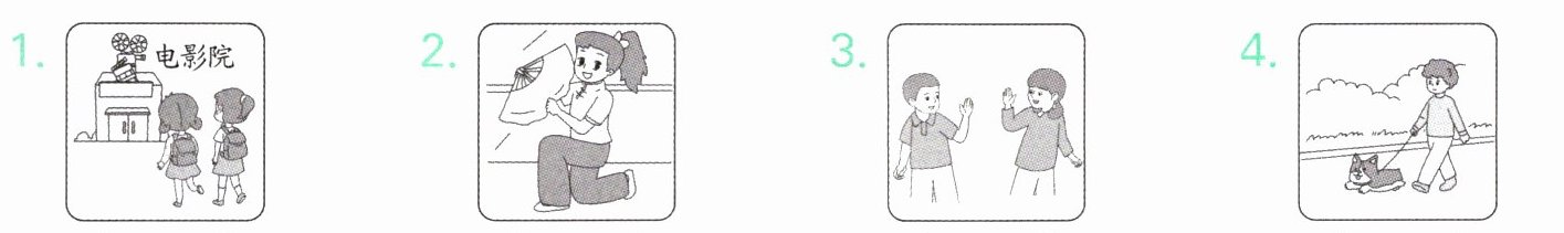 1. go to the cinema 2. after school 3. every week 4. 再见 5. 上舞蹈课 6. 遛狗