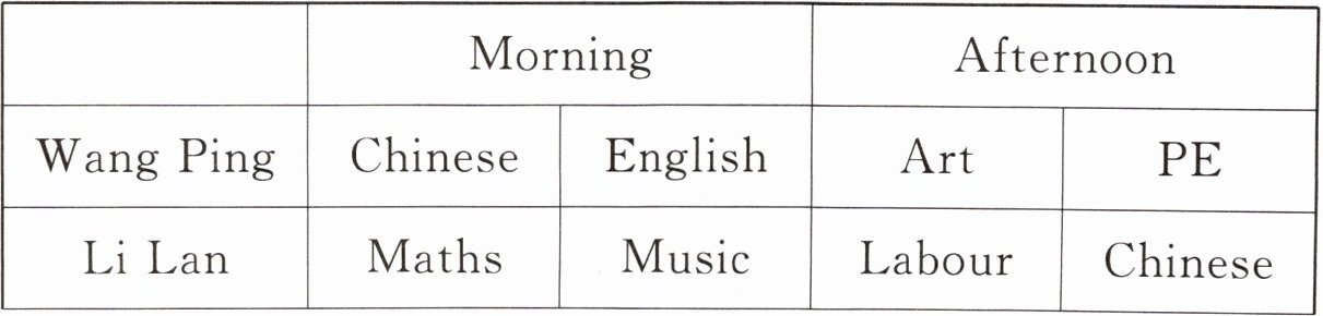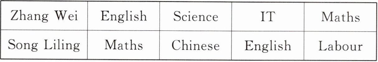 ( )5. From this timetable,we can know(知道)what subjects they like.