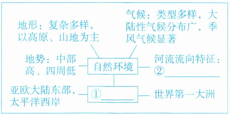 读李华学习某大洲时所画的思维导图,完成1~2题。