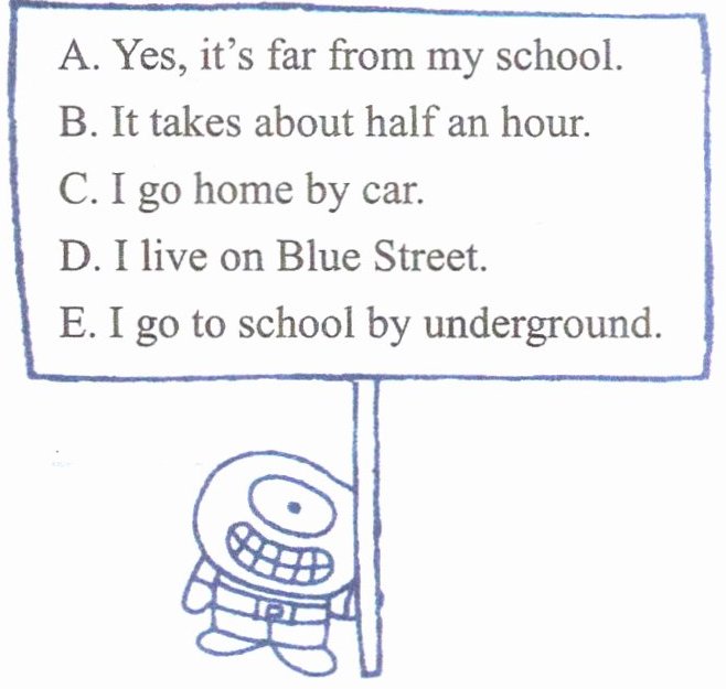 1. How does your father go to work? 2. May comes to school by bike. 3. Kitty lives far from her school.