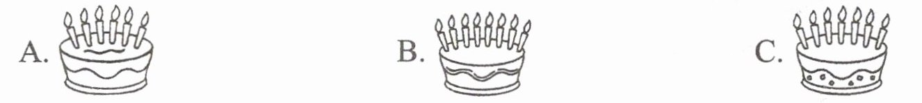 ) 2. Today is Bob’s eighth birthday. Which birthday cake belongs to him?(