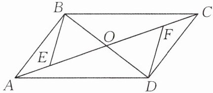 (2) 解:矩形. 理由:$ \because \triangle BOE \cong \triangle DOF $,$ \therefore BE = DF $,$ \angle BEO = \angle DFO $,$ \therefore BE // DF $,$ \therefore $ 四边形 EBFD 为平行四边形,又 $ \because BD = EF $,$ \therefore $ 平行四边形 EBFD 为矩形。