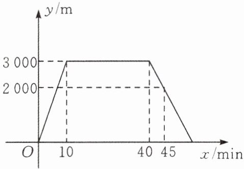 12. (★★★☆☆)小敏上午$8:00$从家里出发,骑车去一家超市购物,然后从这家超市返回家中.小敏离家的距离y(单位:m)和所经过的时间x(单位:min)之间的函数图象如图所示.请根据图象回答下列问题: