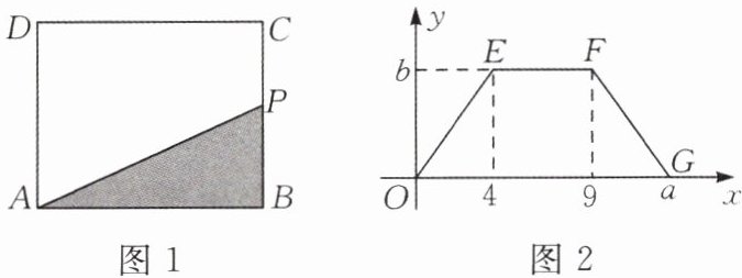 思路点拨:根据图2提供的信息与图1中点P的运动路线对照起来分析,不难发现图2中OE对应着点P从点B运动到点C,EF对应着点P从点C运动到点D,FG对应着点P从点D运动到点A,所以点P从点B运动到点C的距离为4,从点C运动到点D的距离为$9-4= 5$.