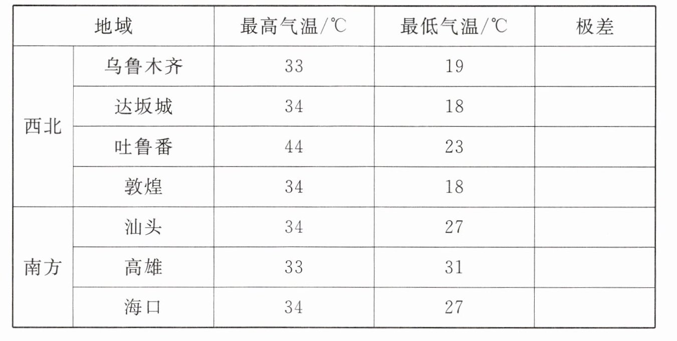 下表是我国6月部分地区一天的天气情况.填写极差栏后,你从中发现什么规律?