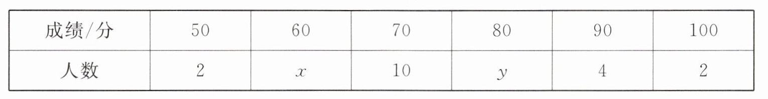 (1)若这个班的数学平均成绩是 69 分,求 x 和 y 的值;