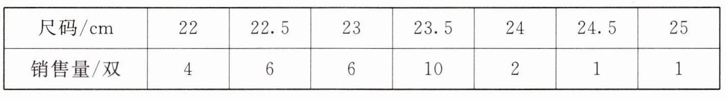 3. (★☆☆☆☆)一家鞋店在一段时间内销售了某种女鞋30双,各种尺码鞋的销售量如下表所示,那么商家更应该关注鞋子尺码的(