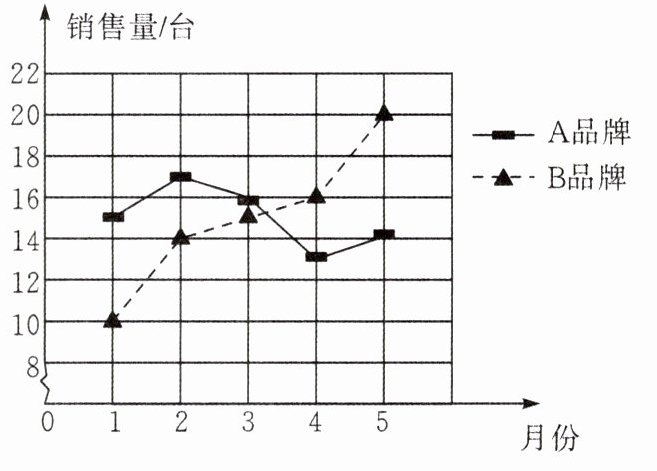 11. (★★★☆☆)某商场统计了今年1~5月A、B两种品牌冰箱的销售情况,并将获得的数据绘制成折线统计图.