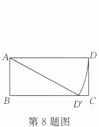 8. (★★☆☆☆)如图,在矩形ABCD中,$AB= 1,AD= 2$,AD绕着点A顺时针旋转,当点D落在BC边上的点$D'$时,则$AD'= $