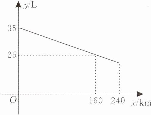 (1) 单程耗油 $\frac{35 - 25}{160}×240 = 15L$,剩余 $35 - 15 = 20L$。