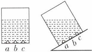 ;若把杯子放置在斜面上时,三点压强$p_{a2}$、$p_{b2}$、$p_{c2}$的关系是$ p_{a2} > p_{b2} > p_{c2} $