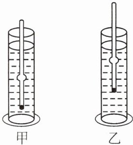 8.(★★★☆☆)密度计是用来测量液体密度的仪器。如图所示,把两支完全相同的密度计分别放在甲、乙两种液体中,密度计静止时,两种液体的深度相同。甲、乙两种液体对容器底的压强分别为$p_甲$和$p_乙$,密度计受到的浮力分别为$F_甲$和$F_乙$,则(