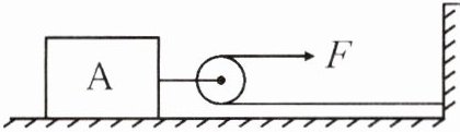 1. (★☆☆☆)如图所示,用$F= 50N$的水平拉力,通过一个动滑轮,使重为 200 N 的物体A 水平向右匀速移动了3 m。在这个过程中(
