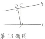 13. 如下图所示,$AC⊥l_{1}$,$AB⊥l_{2}$,则点$A到直线l_{2}$的距离是线段