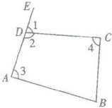 对于∠2与∠4:∠2在直线DE、DA的交点D处(这里DA可看作AB的一部分方向),∠4在直线DC、BC的交点C处,它们在截线DC的同旁,被截线DE、BC之内,所以是同旁内角,由直线DE、BC被直线DC所截而成。