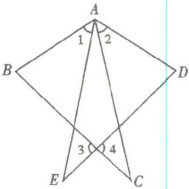 选项D中$\angle 3 = \angle 4$,不是$AB$与$AC$、$AD$与$AE$的夹角相等,不能根据“SAS”判定全等。