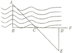 【答案】:过$D$作$DE \perp BF$,且$A$,$C$,$E$三点在同一直线上,使$\angle ABC=\angle EDC=90^\circ$,$BC=CD$,$\angle ACB=\angle ECD$,则$\triangle ABC\cong\triangle EDC$,所以$AB=DE=15$米。