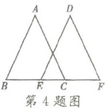 4. (长沙) 如下图所示,点 $B$,$E$,$C$,$F$ 在一条直线上,$AB // DE$,$AB = DE$,$BE = CF$,$AC = 6$,则 $DF = $