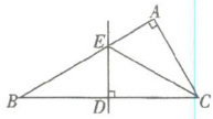 例5 如右图所示,在△ABC中,∠A= 90°,DE是BC边的垂直平分线,DE交BC于D,交AB于E,如果CE恰是∠ACB的平分线,试求∠B的度数。