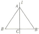 因为点$B$与点$B'$关于直线$l$对称,所以$AB$的对应线段是$AB'$,$\angle B$的对应角是$\angle B'$。