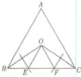 24. 如图,在等边$\triangle ABC$中,$∠ABC和∠ACB的平分线相交于点O$,$BO$,$OC的垂直平分线分别交BC于点E$,$F$,求证:$\triangle OEF$是等边三角形。