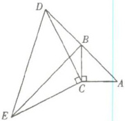 25. 如图,在$\triangle ABC$中,$∠ACB= 90^{\circ }$,$AC= BC$,延长$AB至点D$,使$DB= AB$,连接$CD$,以$CD为直角边作等腰直角三角形CDE$,其中$∠DCE= 90^{\circ }$,连接$BE$。