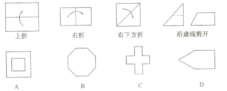 12. 如下图,把一个正方形三次对折后沿虚线剪下,则所得的图形是 (