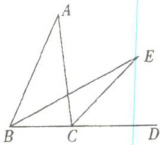 19. 如右图,在 $ \triangle A B C $ 中,$ \angle A = 36 ^ { \circ } $,$ B E $、$ C E $ 分别是 $ \angle A B C $ 与 $ \angle A C D $ 的角平分线,其中,$ D $ 在 $ B C $ 的延长线上,则 $ \angle E = $____