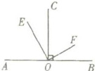 例1 如图,$OC\perp AB$,$\angle AOE= \angle COF$,则射线$OE$,$OF$是什么位置关系?请说明理由。