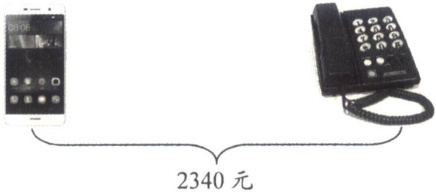 3.从图中可知手机和电话机的总价是$2340$元,设电话机的单价是$x$元,因为手机的单价是电话机的$8$倍,则手机的单价是$8x$元,可列出方程$x + 8x = 2340$。