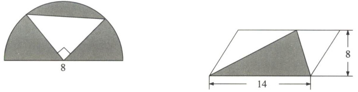 四、求下面图形中阴影部分的面积。(单位:cm)